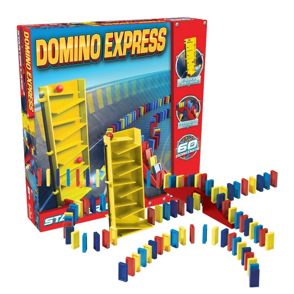 Maak je eigen mooie dominobaan met deze Domino Express Starter Lane! Het pakket bevat onder meer 60 dominostenen in verschillende kleuren.