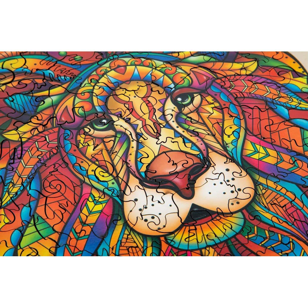 Met deze kleurrijke Grafix houten puzzel maak je een mooie afbeelding van een leeuw. De puzzel bestaat uit 140 stukjes.