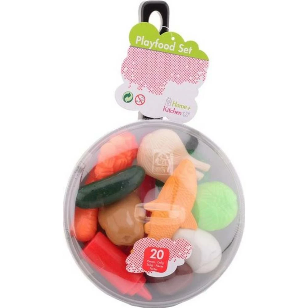 Deze 20-delige set van Home and Kitchen is perfect te gebruiken in jouw speelgoedkeuken. De set bevat een pan en heel veel lekkere ingrediënten.