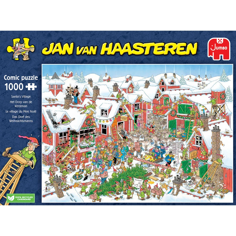 - Ontdek wat er allemaal gebeurt in het dorp van de Kerstman met deze Jan van Haasteren puzzel.
