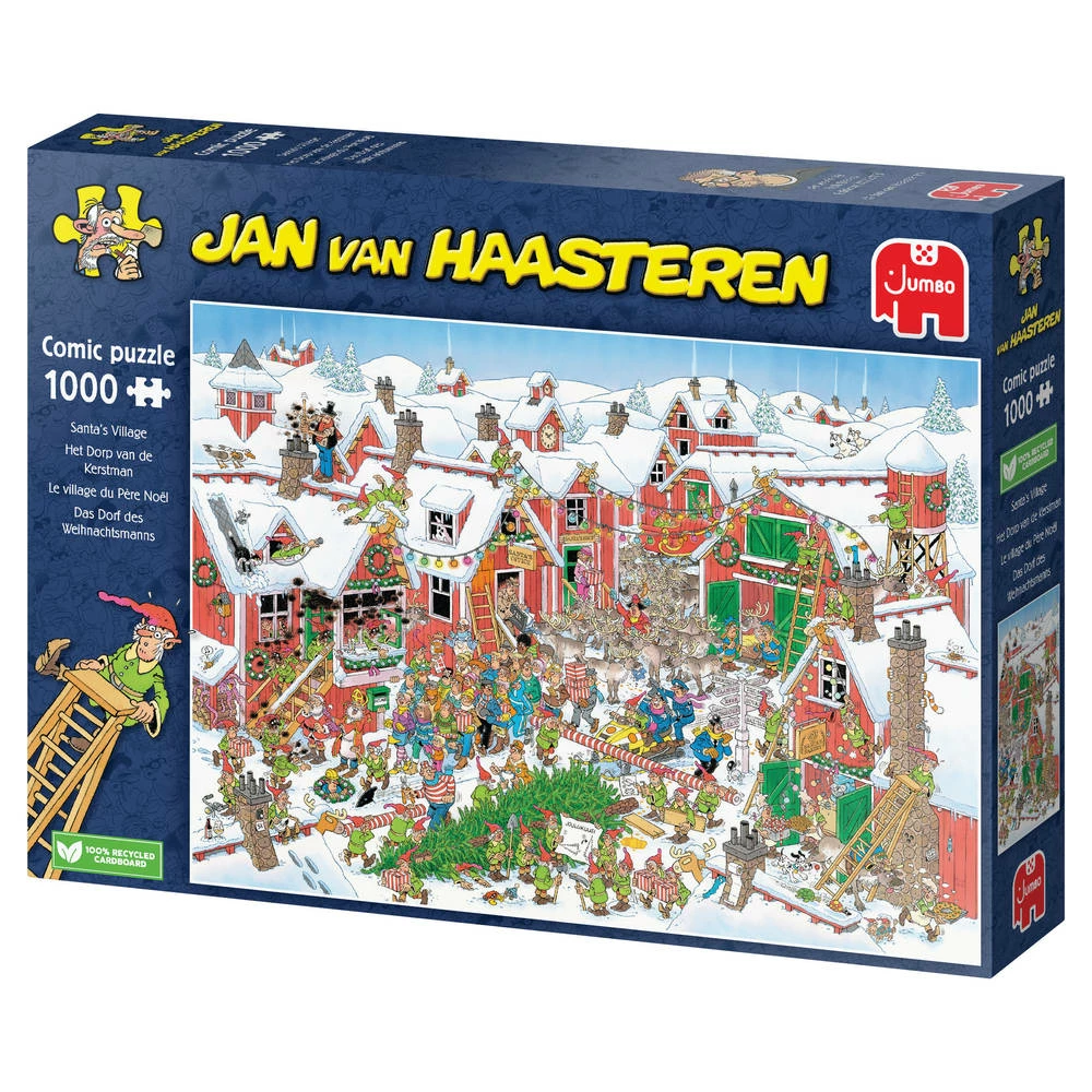 Als je deze Jumbo Jan van Haasteren puzzel af hebt, zie je hoe druk het is in het dorp van de Kerstman. De puzzel bestaat uit 1000 stukjes.