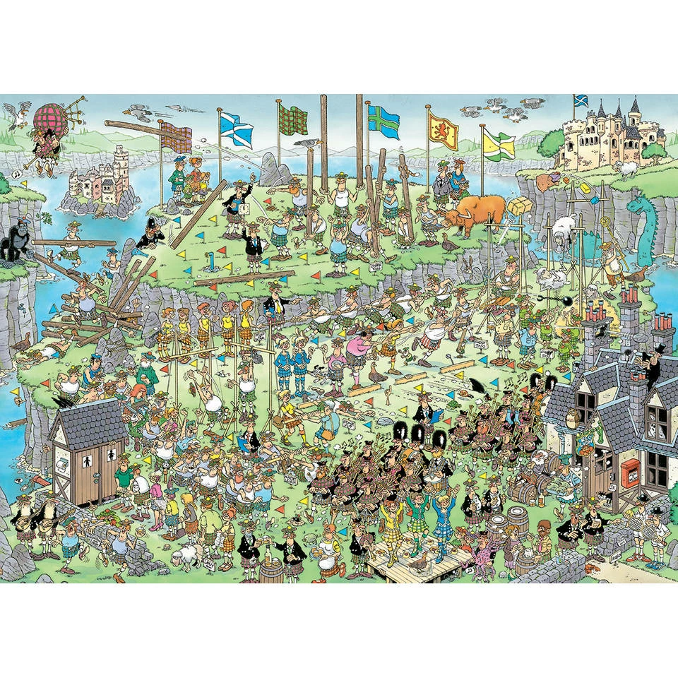 Ga mee op avontuur met de Jan van Haasteren familie in Schotland met deze Highland Games puzzel van 1000 stukjes!