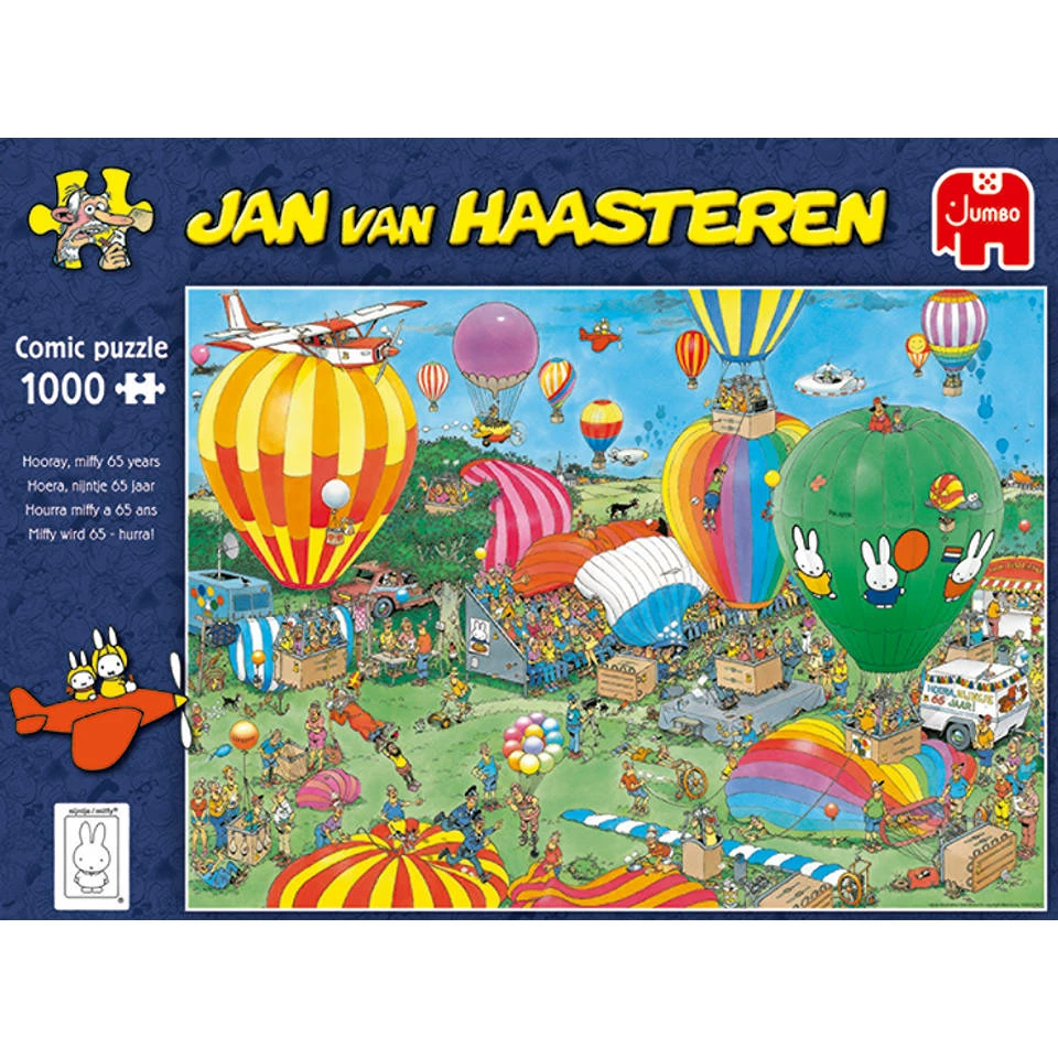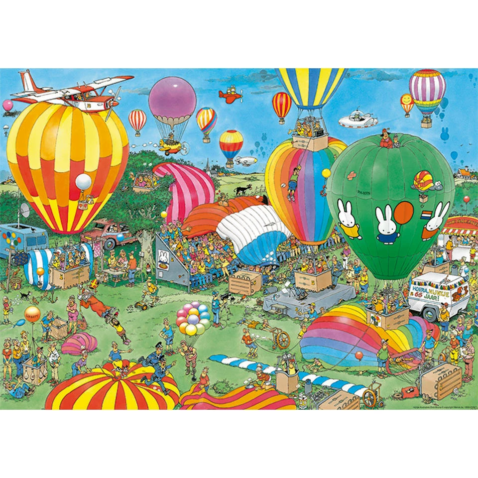 - Deze Jan van Haasteren puzzel heeft een prachtige afbeelding van een ballonfestival ter ere van het 65-jarig bestaan van Nijntje.