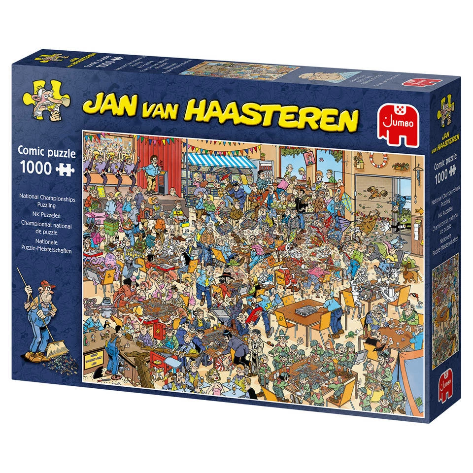 Nu kun je lekker de hele dag puzzelen met deze prachtige Jan van Haasteren NK puzzel van Jumbo die 1000 stukjes telt. Het NK legpuzzelen gaat weer van start en natuurlijk maakt Studio van Haasteren ook ditmaal de puzzel. De plaat blijft nog een verrassing en wordt onthult tijdens het NK, net zoals tijdens voorgaande NK’s gebeurd is. Deze puzzel wordt geleverd in een stevige kartonnen doos en is een leuke bezigheid.