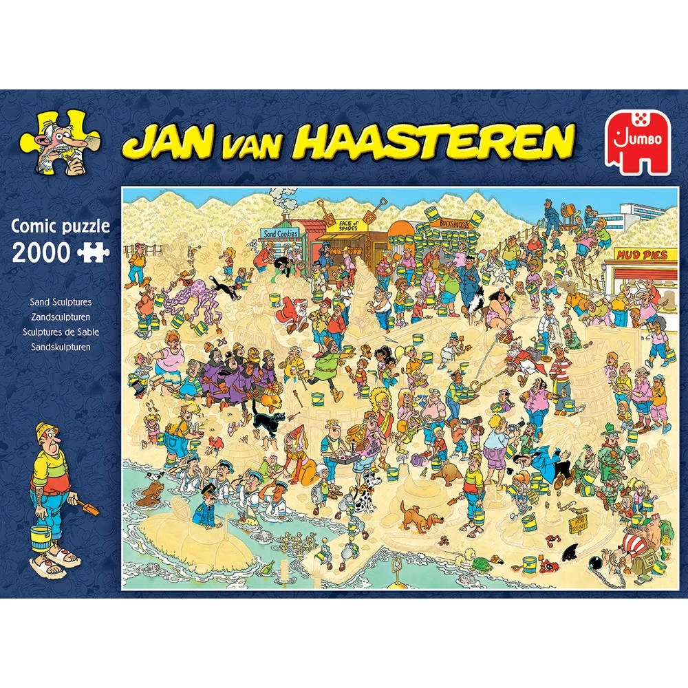 De Zandsculpturen competitie is begonnen en de Jan van Haasteren familie is al druk bezig met het bouwen van de mooiste sculpturen. Ontdek alle leuke details met deze legpuzzel bestaande uit 2000 stukjes.