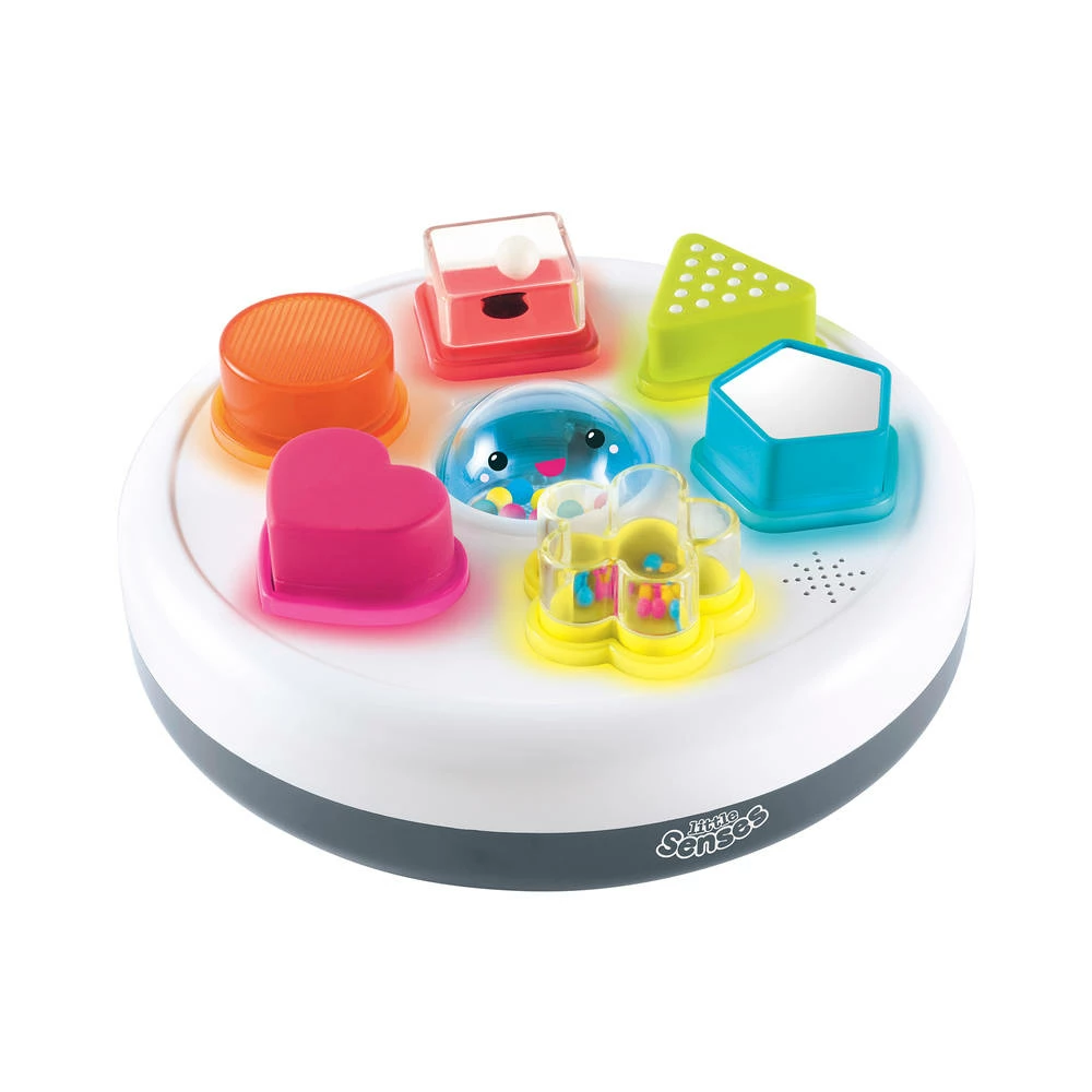 Deze felgekleurde vormensorteerder van Early Learning Centre barst van de lichtjes, geluiden en deuntjes om leren leuk te maken. Er zijn zes vormen om uit te kiezen in een verscheidenheid aan kleuren en texturen die gemakkelijk vast te pakken zijn met de kleine handjes. Draai en draai ze zodat ze in hun sleuven passen: kun jij de juiste vinden?
