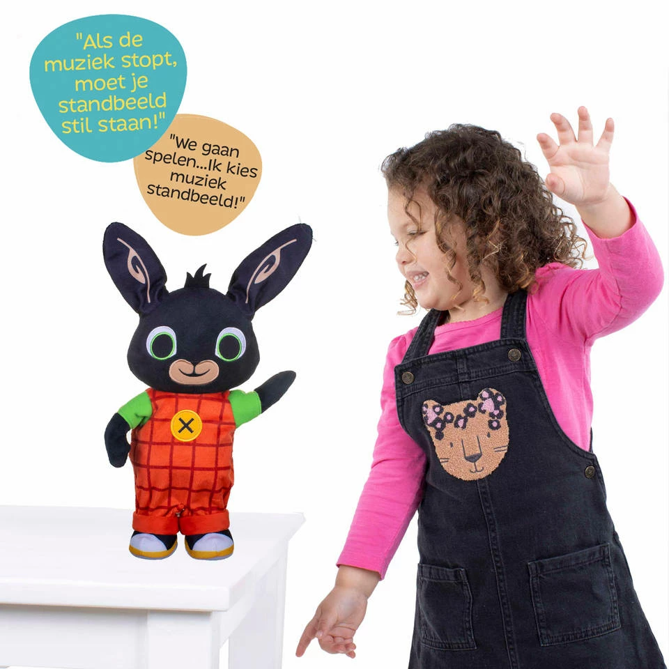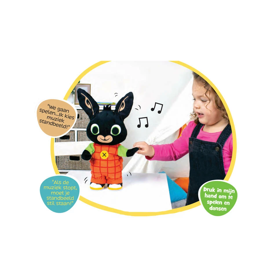 Met deze dansende Bing kun je lekker gezellig meedoen aan het spelletje Stopdans. Bing kan praten en dansen op de muziek.