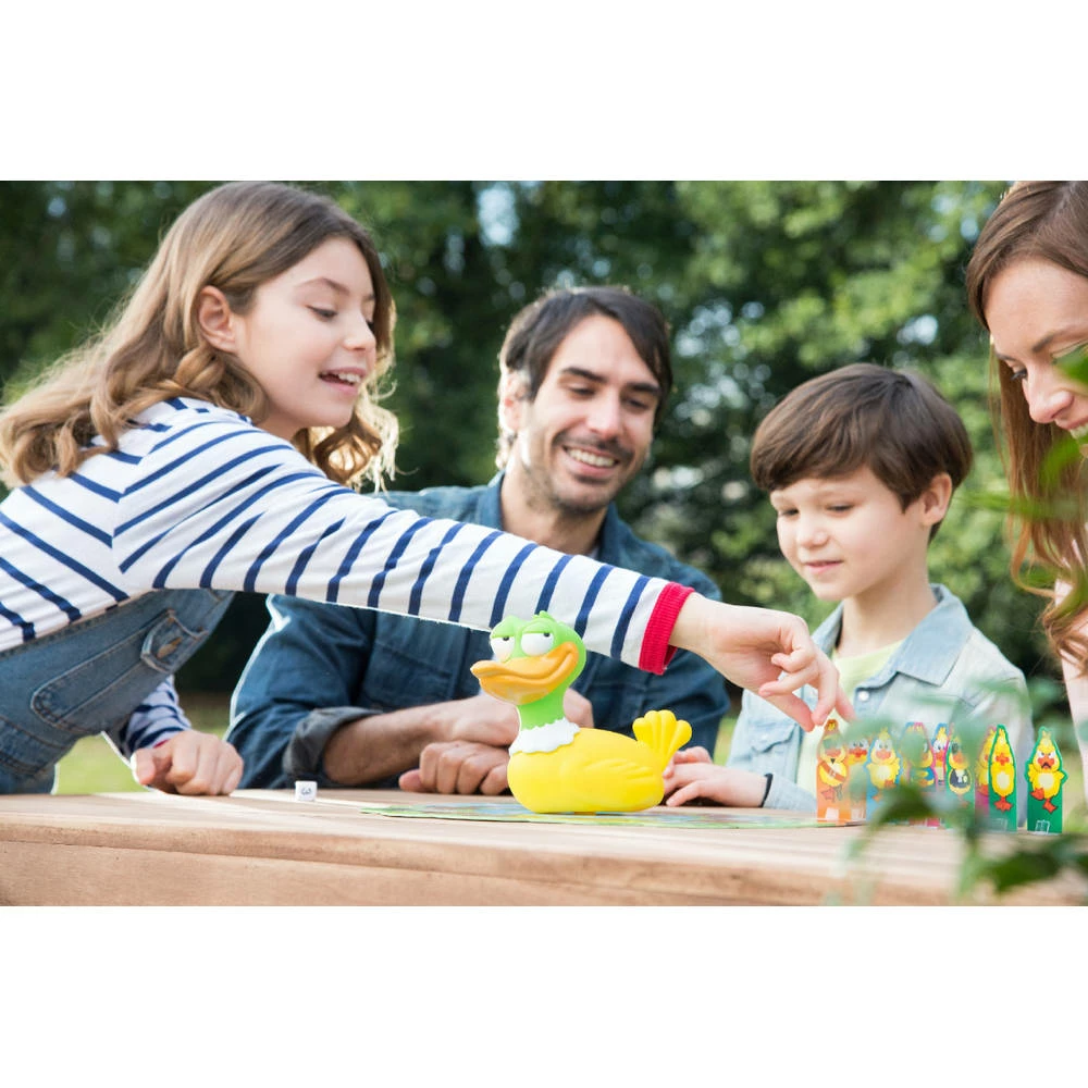 Het doel van Whoopee Duck is om de eendjes naar het water te brengen, maar pas op voor rare snater Whoopee Duck die met zijn windjes je eendjes wegblaast!