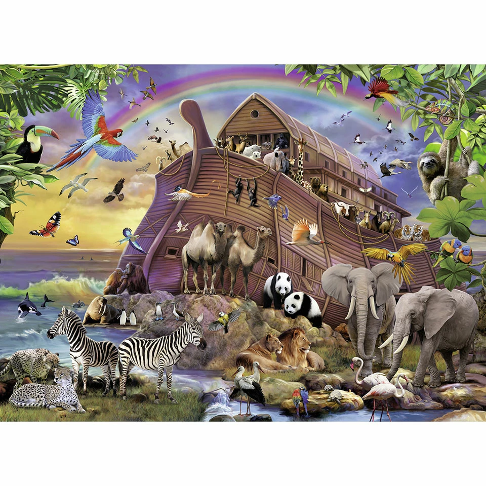 - De legpuzzel vormt een mooi plaatje van de Ark vol met dieren.
