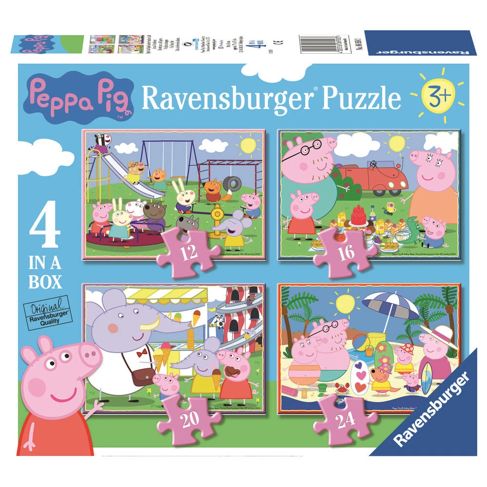 - Maak vier superleuke puzzels van Peppa Pig met deze Ravensburger puzzelbox.