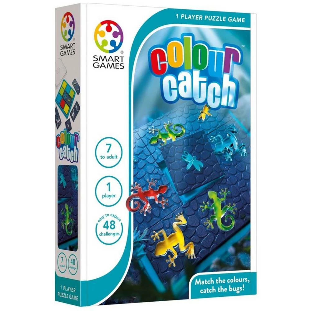 Help de dieren hun avondmaal te vangen in het spel Colour Catch! Plaats alle puzzelstukken op het spelbord, zodat de kikkers en salamanders dezelfde kleur krijgen als in de opdracht. Maar kijk uit! De dieren zijn transparant en veranderen van kleur, naargelang de ondergrond waarop ze geplaatst worden. Een kleurrijke Smartgame met 48 opdrachten voor kinderen vanaf 7 jaar.