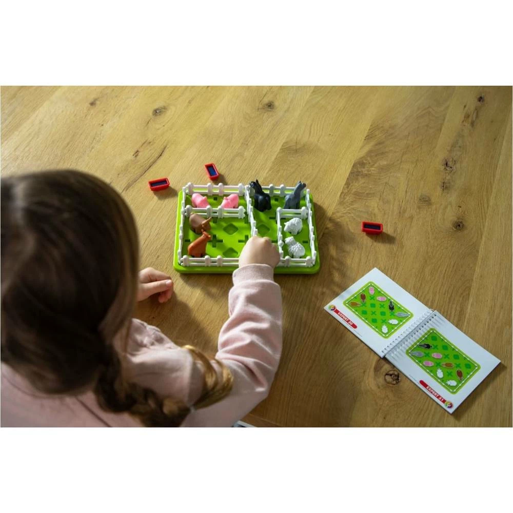 Houd de dieren uit elkaar met het spel Smart Farmer van SmartGames! Gebruik de drie hekken zorgvuldig om de paarden, koeien, schapen en varkens gescheiden te houden.