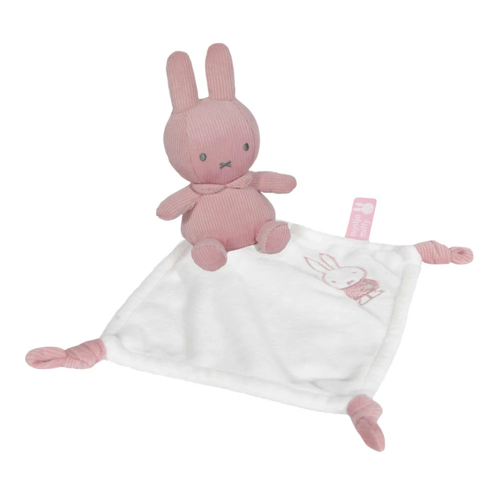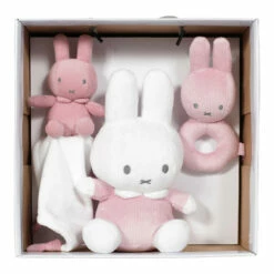 Deze Nijntje Pink Baby Rib cadeauset bevat een knuffel, een rammelaar en een klein knuffeldoekje. Verpakt in een mooie bewaardoos.