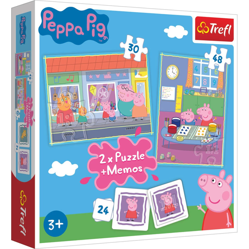 Met deze twee puzzels en memo beleven Peppa Pig fans heel veel plezier. De ene puzzel bevat 30 en de andere 48 puzzelstukjes. Genoeg puzzelplezier dus. Als je wat anders wilt doen dan puzzelen, kun je overstappen naar de memo. Zowel de puzzels als memo zijn in Peppa Pig-thema.